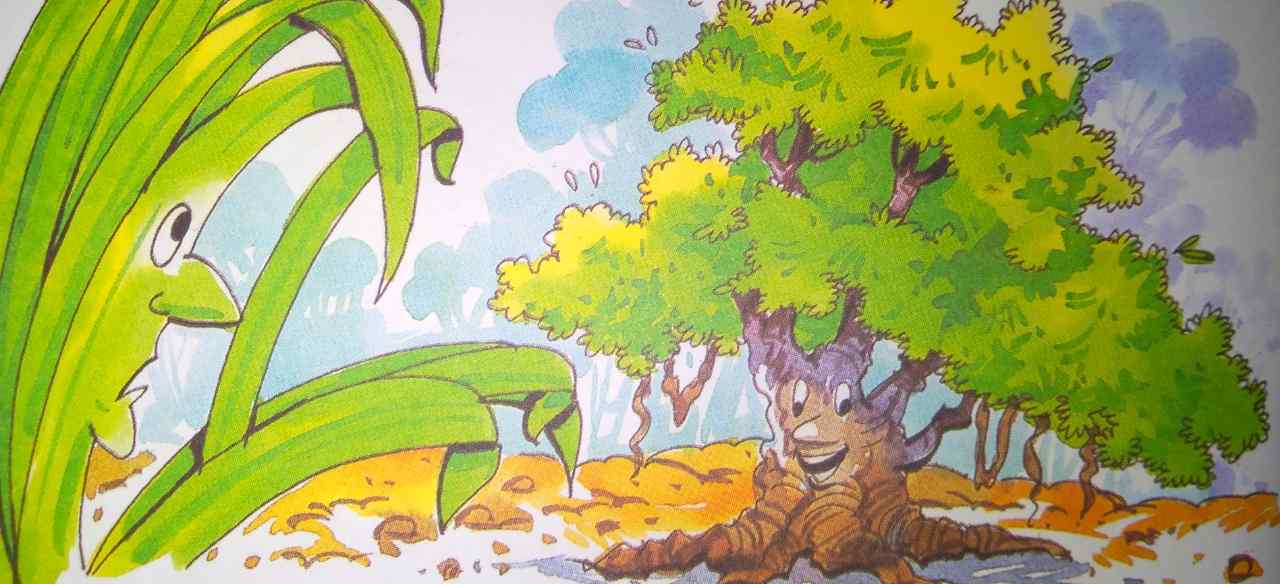 जंगल में एक विशाल बरगद का पेड़ और कुछ सरकंडे साथ-साथ खड़े थे। एक दिन तेज हवा के झोंके से एक सरकंडा पूरी तरह नीचे झुक गया। यह देखकर बरगद बड़े घमंड से बोला,