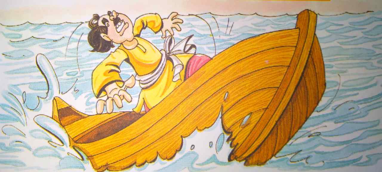 तभी अचानक तेज हवाएँ चलने लगीं और उन हवाओं ने एक भयंकर तूफान का रूप ले लिया। लहरें तेज होने के कारण उसकी नाव डगमगाने लगी और डूबने की स्थिति में आ गई।