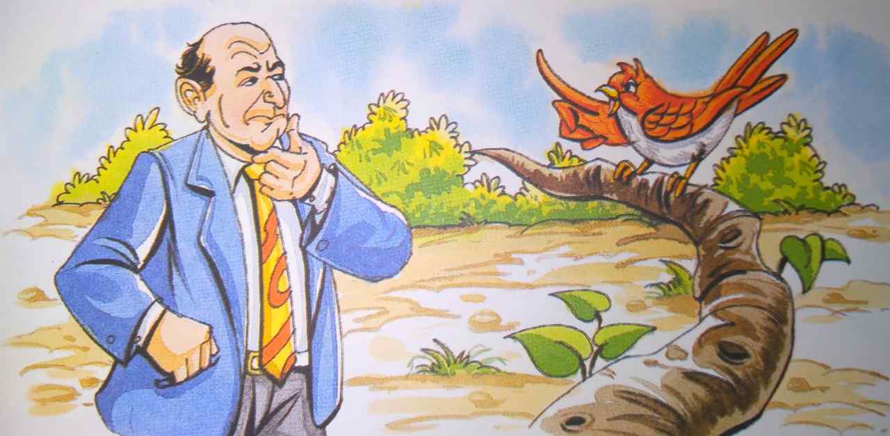 एक अमीर खर्चीला आदमी अपना सारा धन जुए और सट्टे में गँवा चुका था। एक दिन वह काफी धूल से भरे रास्ते से गुजर रहा था। उसने देखा कि पेड़ की डाली पर एक चिड़िया (अबाबील) बैठी है। वह सोचने लगा,