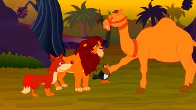 इसलिए, शेर शिकार करने बाहर नहीं जा सकता था। दूसरे जानवर शिकार नहीं कर सकते थे, और वे सभी भूखे रह गए। शेर ने लोमड़ी, कौआ और ऊंट को बुलाया।