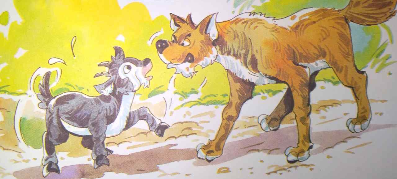 कहीं मत जाना, मेरे साथ ही रहना।” । बच्चे ने सिर हिला दिया, लेकिन वह सबसे नजर बचाता हुआ दूर निकल गया। एक भेड़िया उस पर नजर गड़ाए बैठा था। भेड़िया तुरंत बकरी के बच्चे को खाने के लिए आगे बढ़ा।