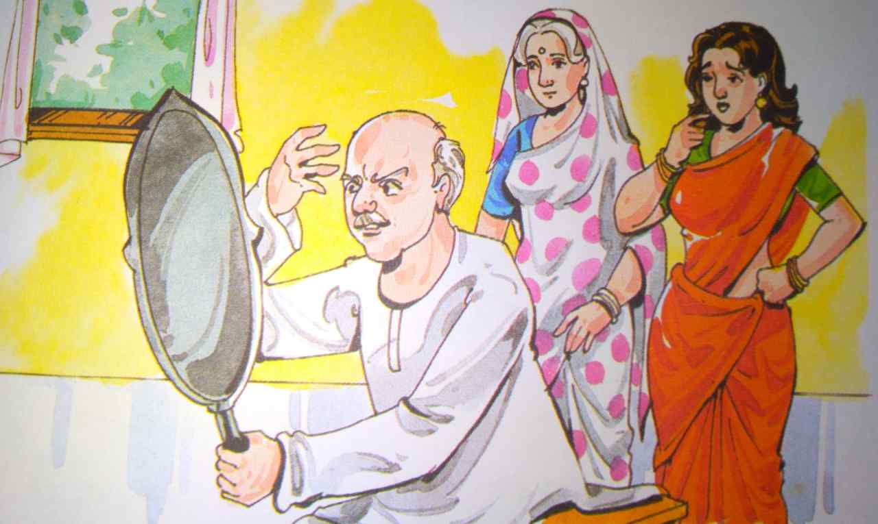 यह सोचकर उसने पति के सिर से काले बाल निकाल दिए। यह क्रम दो हफ्तों तक चला। एक दिन अचानक पति ने शीशे में अपना चेहरा। देखा तो वह डर गया। दोनों पत्नियों की जिद्द में वह गंजा हो गया था।