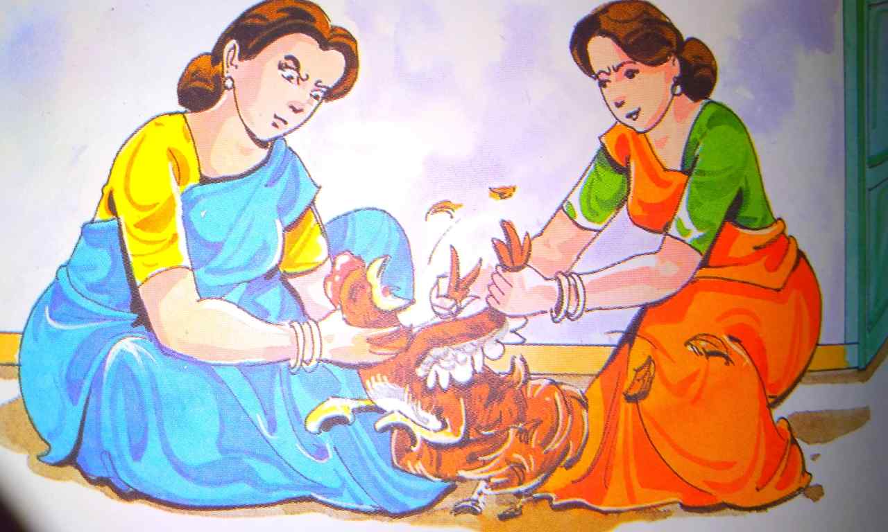 “तुम काम करना शुरू करो और 4 बजे मुझे जगा देना। नौकरानियाँ पछताने लगीं कि उन्होंने बेकार में ही मुर्गे को मारा।