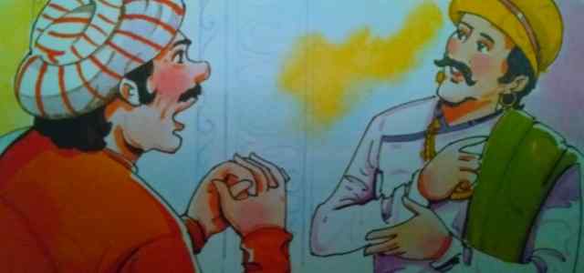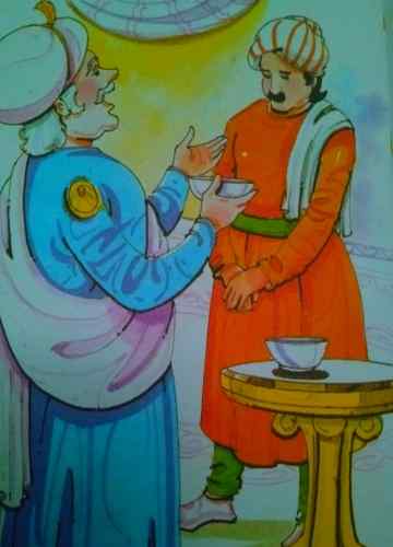 “अब मैं समझा। सजा के तौर पर बादशाह सलामत तुमसे चूना खाने के लिए कहेंगे। ऐसा है, मैं तुम्हें एक चीज देता हूँ। एक कटोरे में तुम चूने की बजाय वह चीज रख लेना। जब बादशाह सलामत तुम्हें चूना खाने के लिए कहें,