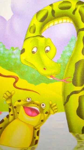 तुम यहाँ पानी नहीं पी सकते।” तब मामला सुलझाने के लिए नाग ने उस सांप को लड़ाई के लिए चुनौती दी। एक मेंढक भी उसी तालाब में रहता था।