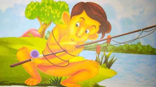 दोपहर के भोजन के समय वे अपना जाल वहीं छोड़कर चले गए। आदत से मज़बूर बंदर उस जगह पर गया, जहाँ वे मछुआरे बैठे थे।