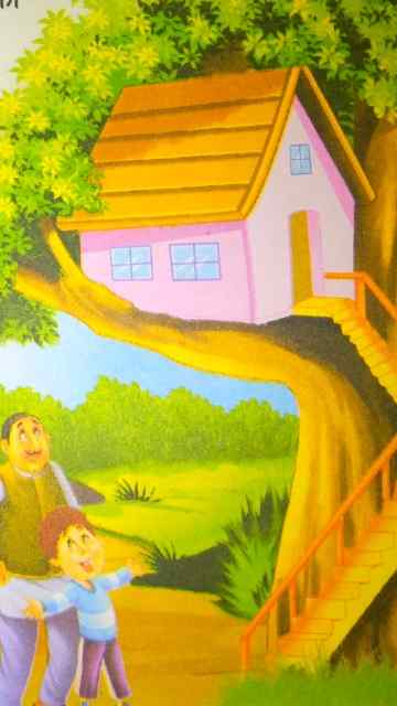 मैं इन छुट्टियों में जंगलों में जाकर, पेड़ पर बने एक लकड़ी के घर में रहना चाहता हूँ।” उसके पिता मुस्कराए और बोले-“बेटा, तुम्हारे बगीचे में ही तुम्हें अपना पेड़-घर मिल सकता है। मैं तुम्हारे लिए इसे बनाउँगा।”
