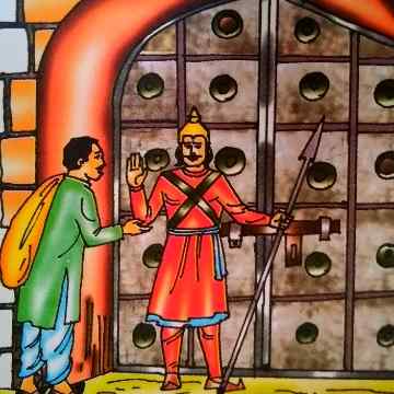 रास्ते में उसने एक प्रसिद्ध मंदिर के बाहर भारी भीड़ देखी। उसने इस बारे में लोगों से पूछताछ की तो पता चला कि राजा भगवान से अपने खजाने के हमेशा भरे रहने की प्रार्थना करने आए हैं।
