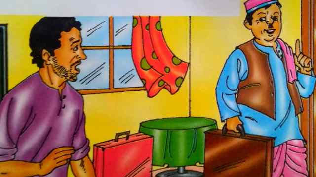 इसलिए वह एक अतिथि गृह में किराए पर एक कमरा लेने के लिए गया। चोर भी उसके पीछे-पीछे पहुँच गया। अतिथि गृह में सिर्फ एक ही कमरा खाली था। इसलिए दोनों को एक ही कमरे में गुजारा करना पड़ा।