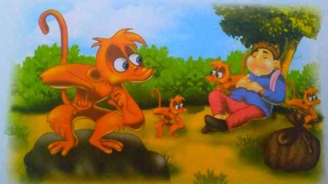 लेकिन बंदरों पर कोई असर नहीं पड़ा। तब टोपी वाला ज़ोर से ताली बजाने लगा। उसे देखकर बंदर उसकी नकल उतारने लगे।